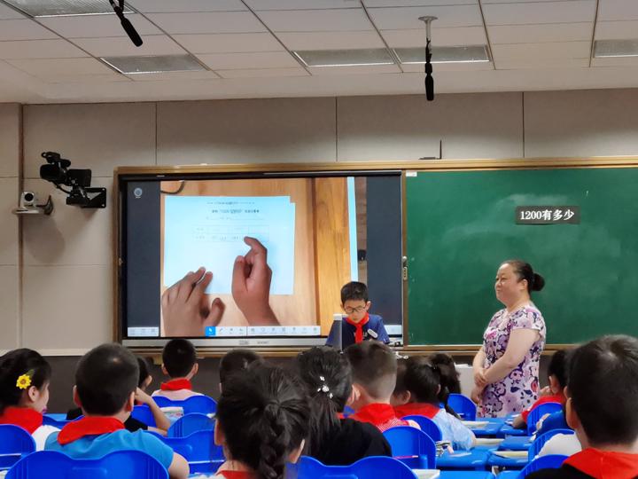 首 先,张岚老师和二(6)班的孩子们为大家带来了拓展课《1200有多少》。张老师以测量任务贯穿课堂,学生在用不同的方法测量、推算1200张纸有多厚的 过程中,小组协作、合理分工,通过对一些小数据的精心选取,以小见大,突破重重困难,完成大数据的测量,在辩证思考中充分培养数感,体验数学实践活动的乐 趣。