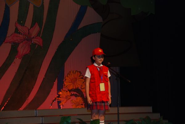 会上团市委书记邢正军对全市少先队员提出了“共同努力,迎接青奥,争做城市小主人”的殷切期望,并对南京市少先队的今后工作作出重要指示。领导讲话结束,播放了一段视频短片。南京市的多位著名主持人包括:林子姐姐、真真姐姐、东升、老吴以及《直播南京》的主持人等都出现在短片中。他们给我们提出了祝福和期望,鼓励青奥小记者们努力工作,报道出精彩的新闻。我校五(1)中队万宇瑶同学代表南京青奥小记者发言,号召全体小记者积极主动报道青奥会,为青奥作出贡献。最后由邢书记和《南京日报》总编一起为“南京青奥小记者团揭牌”,并给全市共10所小学授予了“南京市青奥小记者站”的铜牌,我校大队辅导员也作为代表上台接牌。在接下来的文艺表演中,运动元素结合舞蹈、歌唱、健美操、剑术……精彩的表演引起阵阵掌声!