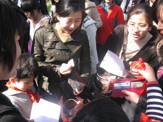 周日早晨,孩子们早早到来到了紫金山下,用自己稚嫩的小手,用他们真诚的行动,收集了无数的春雨(爱心捐款),得到了路人的支持和赞赏,一位老人捐过10元钱后,又返回为自己的小孙子捐了一次,一边捐一边说:“你们这些娃娃做的事让我这个老少先队员都感到很骄傲,你们就是未来中国的希望!”在短短的半个小时内,同学们就募集了422.2元的爱心款,市民们的信任和热心让孩子们感受到了人间的温暖,对自己生在南京这个博爱之都感到自豪。