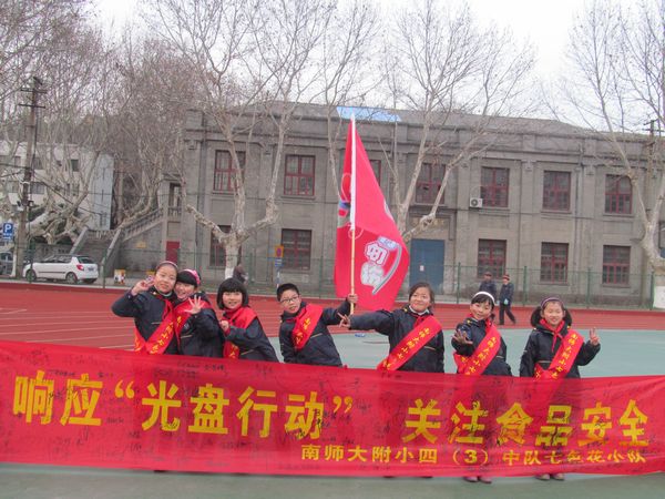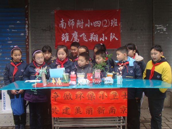 五(5)中队蒲公英小队的队员利用发传单,让大家了解到环境保护的重要性。四(4)中队快乐飞鱼小队开展了低碳出行,远离雾霾的活动。他们关注了南京近期天气及媒体报道,在街头向市民介绍自家的低碳出行方案,动员市民加入到低碳出行队伍中来,并留下支持的签名与联系方式;并进行电话回访,了解签了名的市民近期低碳出行情况。她们的活动受到《现代快报》记者的关注,活动在第二天见报后,又被多个网站转载。四(3)中队“七色花”雏鹰假日小队的队员关注了食品安全,他们开展了响应光盘行动宣传签名活动,通过活动,倡议人们积极响应“光盘行动”,珍惜粮食反对浪费;同时,号召广大少年儿童学习食品安全知识,掌握自我保护技能,过一个平平安安新春佳节。他们还给南京市慈善总会捐助了500元助学款,资助一位贫困的小朋友。 六(5)中队梦飞扬小队的队员来到参观南京公共安全教育馆认识易燃易爆品,学习消防知识。五(6)紫金花小队的队员进行了地震及余震逃生体验,了解逃生技能。五(2)雏鹰假日小队队员在紧急迫降体验、地铁逃生体验,洪水、火山模拟参观中掌握并熟练逃生技能,认识逃生的各类工具,并学会使用。还有五(3)中队的阳光小队队员来到南京城东污水处理厂,号召少先队员“和城墙宝宝一起做公益”,了解环境保护的相关知识。他们利用假期积极宣传环境保护的相关知识,在全社会营造关注生态环境的良好氛围。四(2)中队飞翔小队思考如何变废为宝,善用生活中的废品,亲自动手完成自己喜欢的小作品。他们把环保小制作展示到街道,并能向路人和市民介绍环保的重要性。四(1)飞鹰小队向市民分发《民防应急手册》,分享公益刊物,关注平安自护,他们走进自然,为保护自然环境做贡献,营造关注我们身边的生态环保建设的良好氛围。