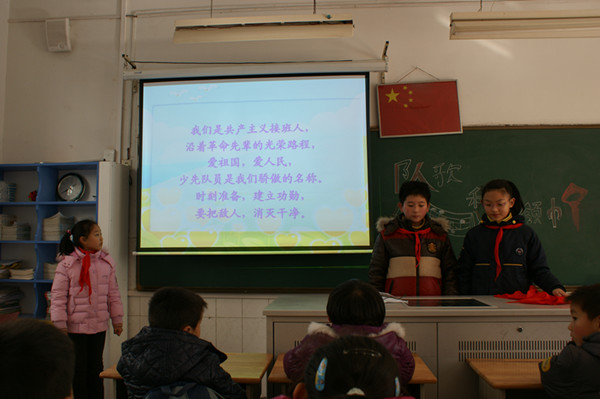 元旦前,我校将举行一年级的新生入队仪式,通过入队前的这一个月的队课,一年级同学们更加了解我们的少先队,我们的共产党,我们的祖国。相信他们定能在少先队的大家庭里健康快乐的成长,为建设社会主义和共产主义贡献力量!