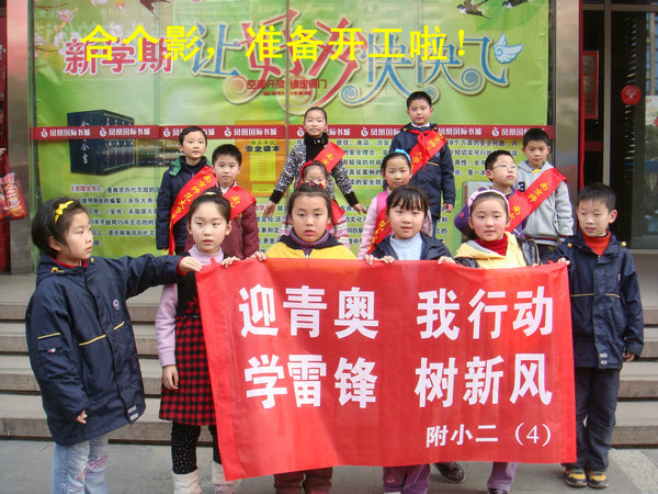 为迎接青奥会,弘扬雷锋精神,在校园中形成了崇尚雷锋、学习雷锋、争做雷锋的良好风气,南京师范大学附属小学拉开了学雷锋系列活动的帷幕。3月13日下午,南师附小二4中队的“快乐飞鱼假日小队”积极响应大队部的号召,来到南京凤凰国际书城,开展“迎青奥我行动,学雷锋树新风”书城志愿者活动。