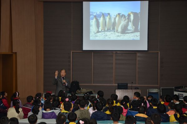 讲座中位梦华爷爷通过大量的南极、北极科考图片,向同学们展示了神秘的极地世界,他幽默的语言,风趣的讲解,和珍贵的影像资料博得了同学的阵阵掌声。最后,位梦华爷爷还向学校赠送了一套他的著作《极地惊心大探险》。听完讲座,同学们纷纷表示要增强环保意识,通过小手拉大手,影响家庭和周围的人去关注我们的环境。我们相信,关注北极就是关注我们的未来。