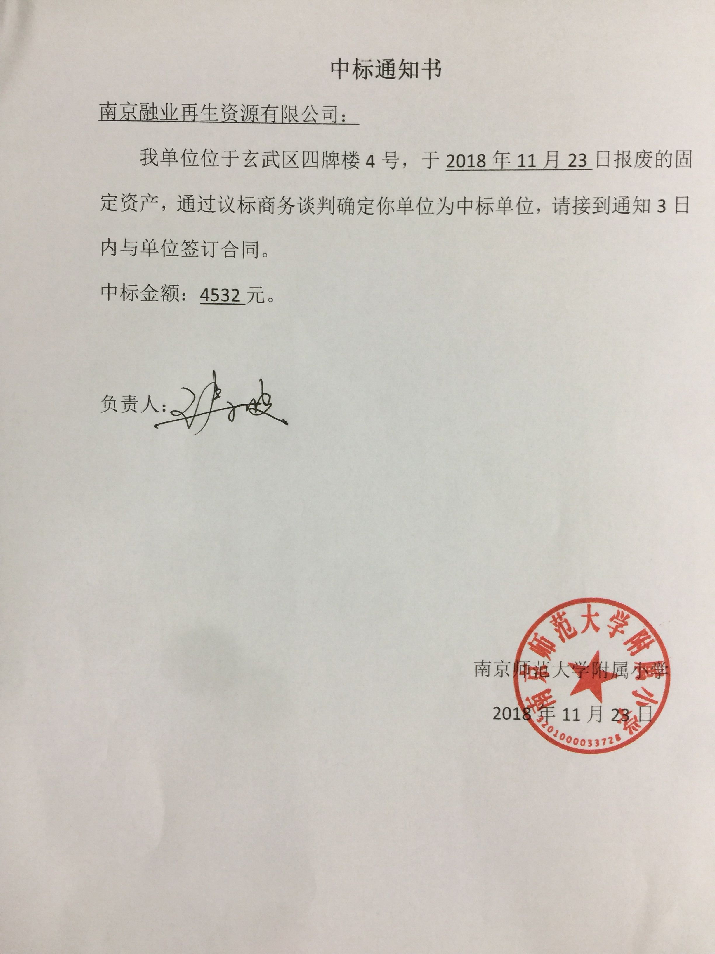 资产报废招标中标通知书