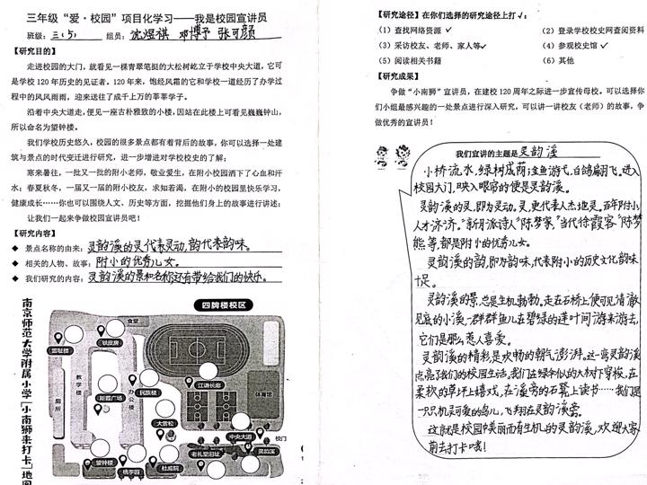 灵韵溪所在处为原旧礼堂和车棚,上世纪九十年代旧礼堂和车棚拆除,建了二层楼的教学楼,楼东侧为斯霞塑像。斯霞塑像移放斯霞广场后,开挖了一条小溪,命名为“灵韵溪”。