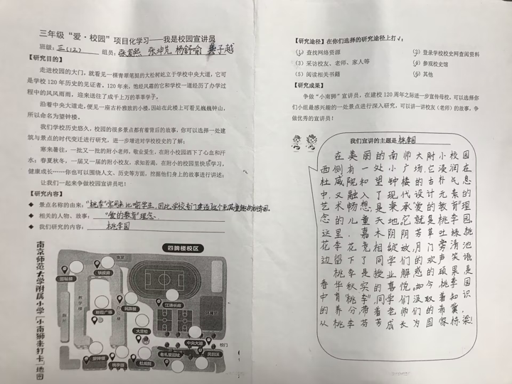 杜威院北侧与望钟楼之间有一片绿化庭院,名曰“桃李园”,内有植物、矮墙和景观石,庭院内植物友一棵大乔木枫杨和若干竹子、桂花、桃树、李树等植物。桃李园西侧贴近围墙有一组 L形仿民国式样的钢筋混凝土长廊,为现代所建。